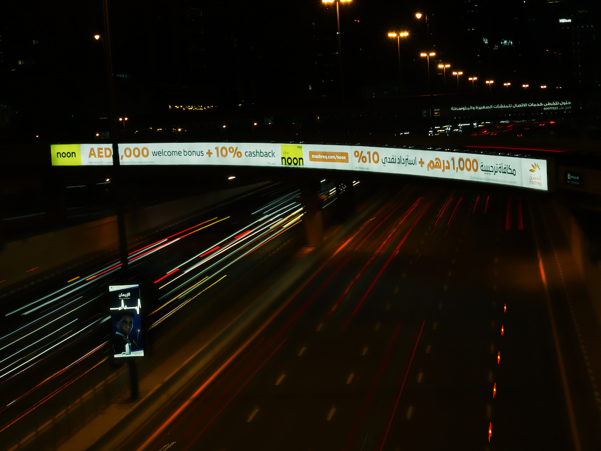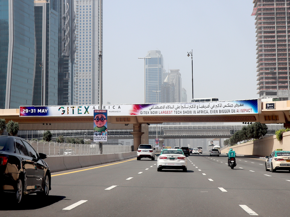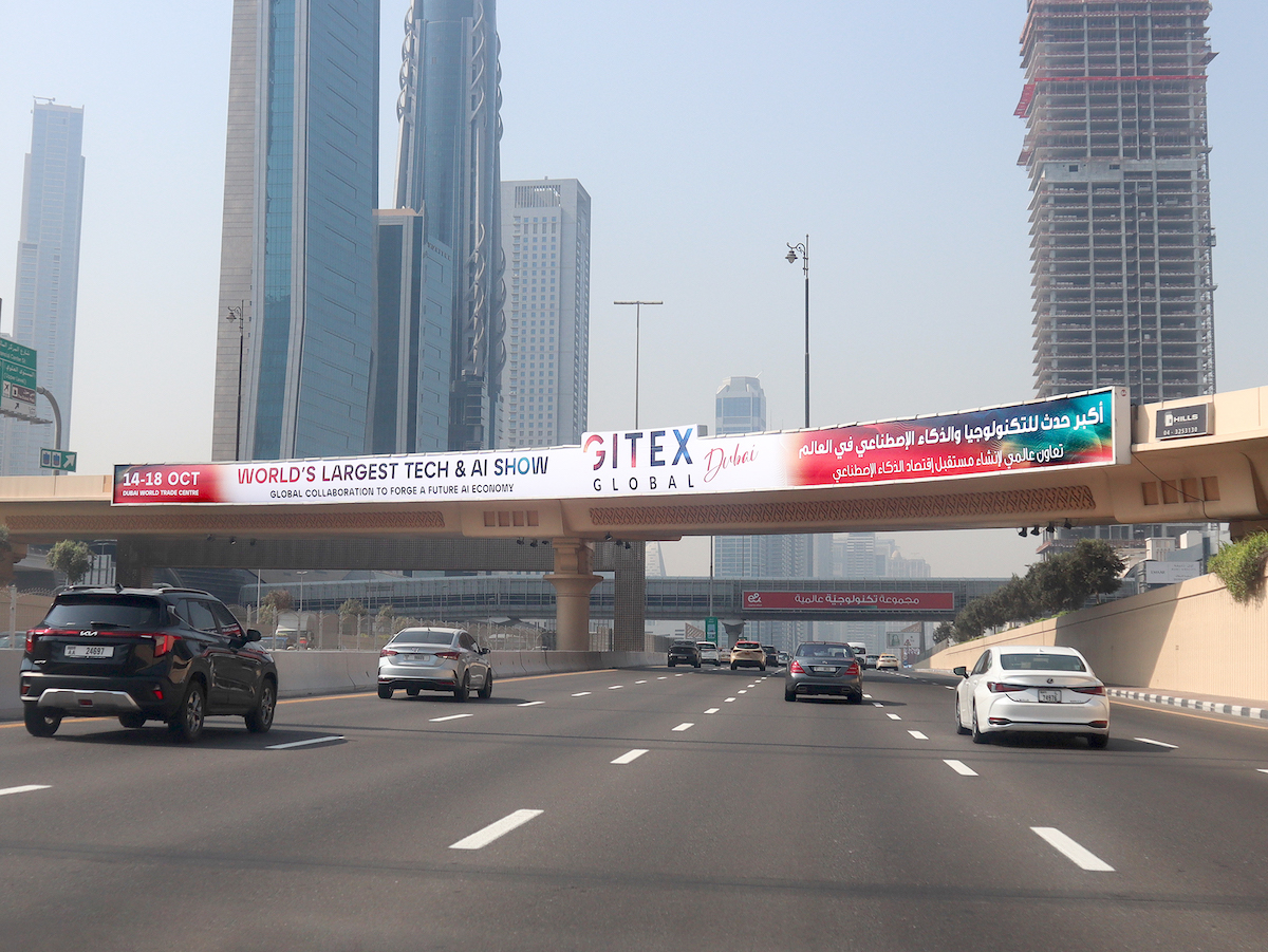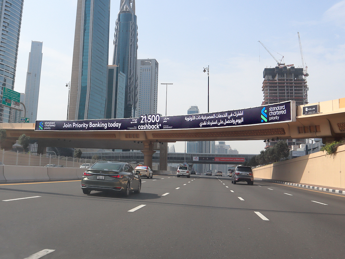 SZR 1st Interchange Face A – (Dubai towards Abu Dhabi) Visual Size 64.8M X 2.4M Estimated Cars 550,000 Type Backlit Bridge Direction DXB to AUH The 1st Interchange on Sheikh Zayed Road, it’s very close to Dubai Mall and the world famous Burj Khalifa Tower. It can be seen by all traffic Coming from Dubai and World Trade Centre toward Jebel Ali & Abu Dhabi.